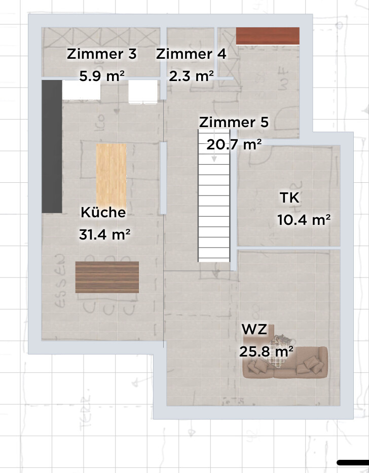 Hauswirtschaftsraum sollte den Abgang im TK haben. check