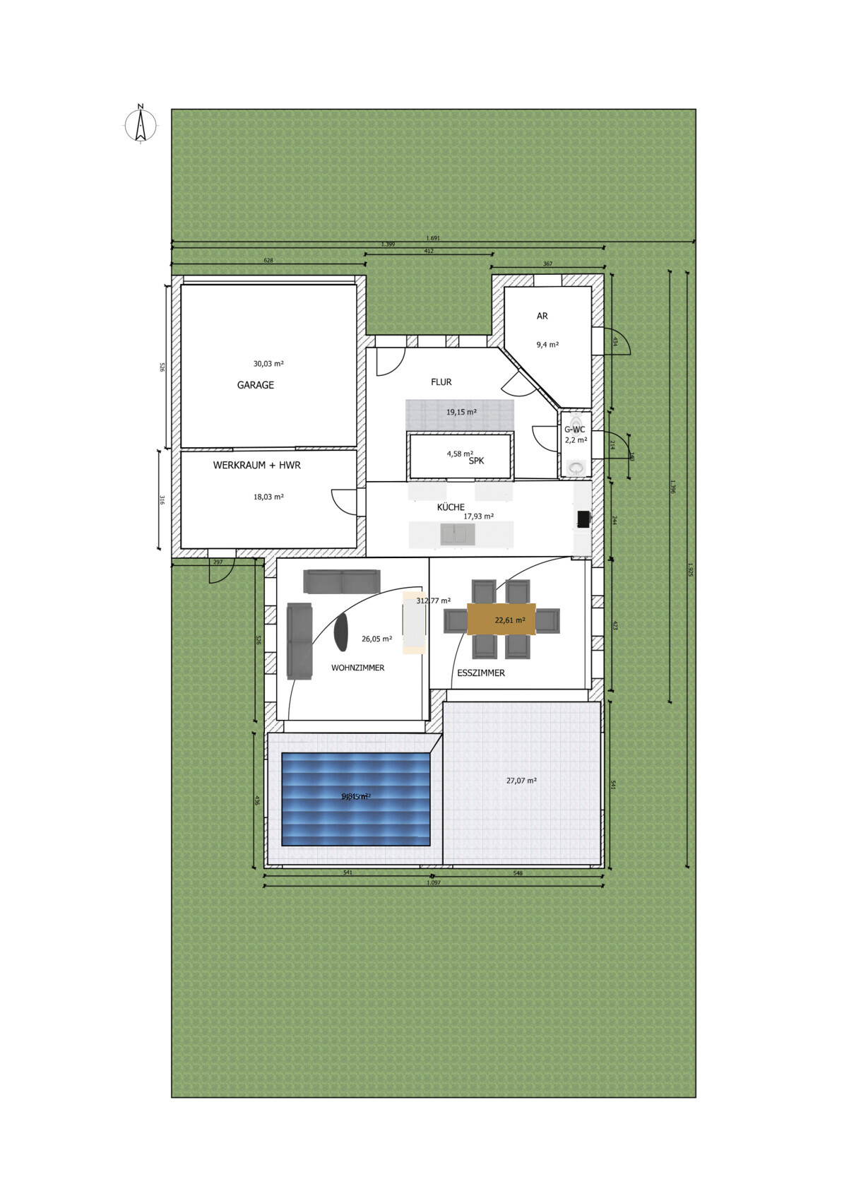 Die geplante Küche solltest du auch mal überdenken, momentan läufst du dir ja die Füße wund zwischen Spüle und kochfeld.