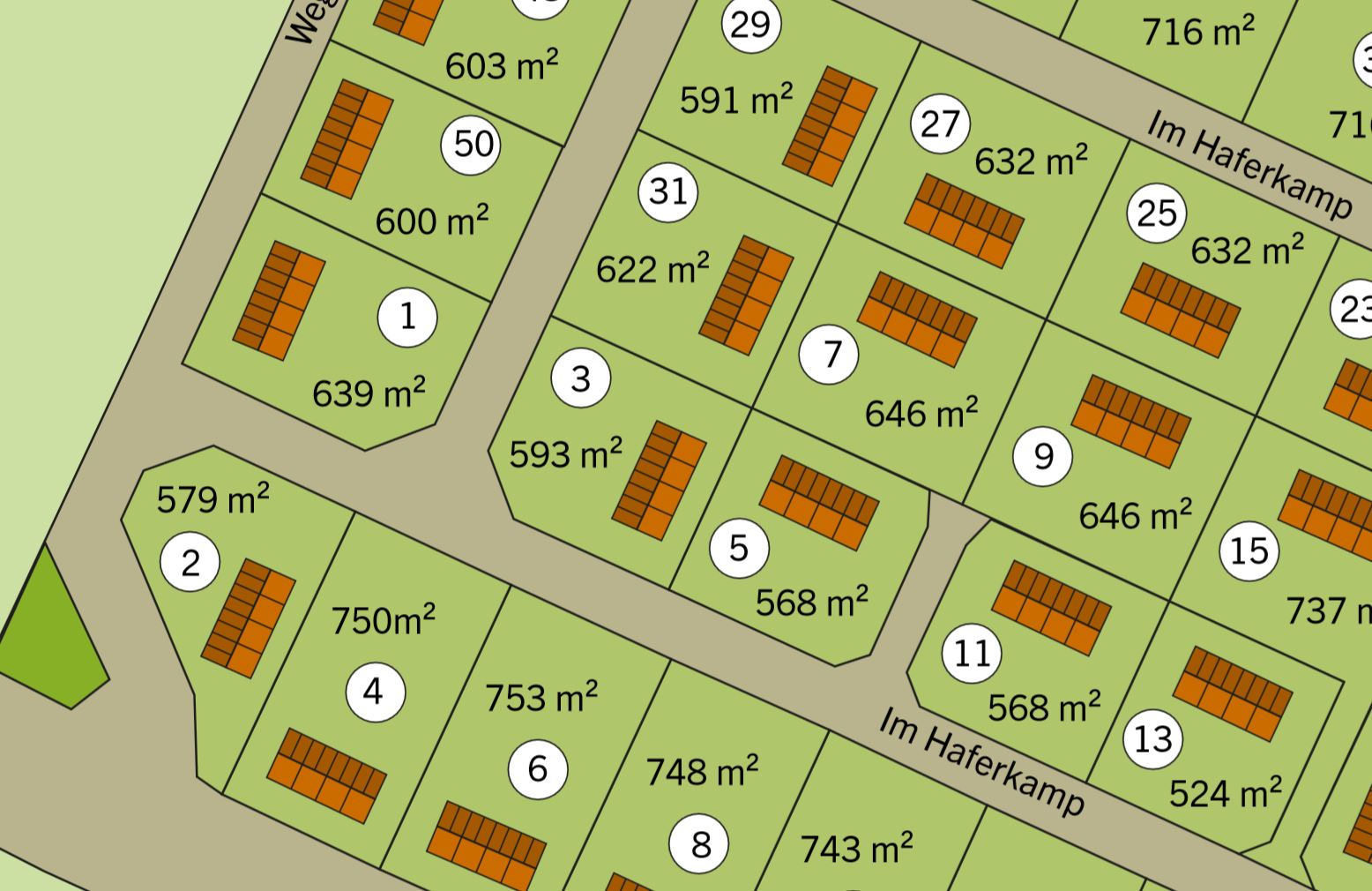 Größe des Grundstücks 639 m2 Es handelt sich um Grundstück Nr. 1 des Exposés