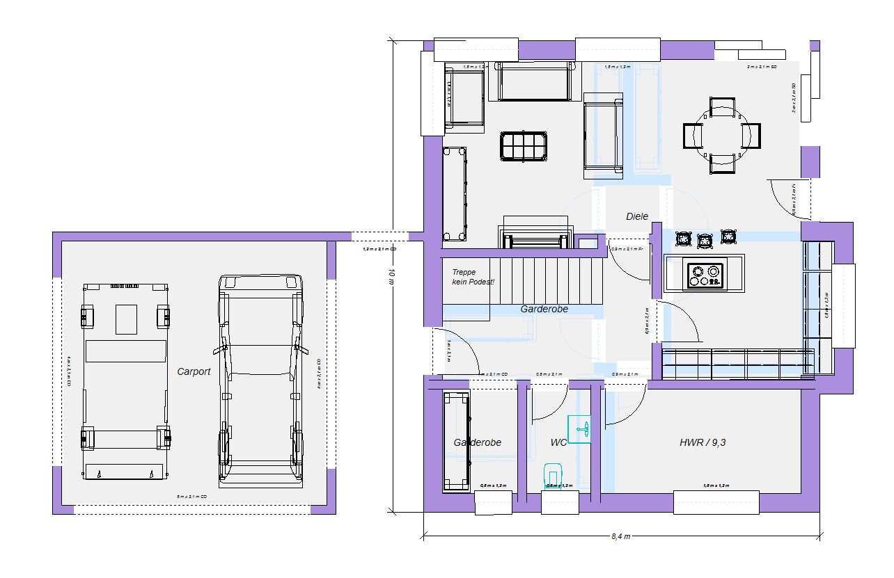 Kann auch gerne mehr Infos zu den einzelnen maßen der räume liefern. das Programm kann leider nicht selbstständig vermaßen. mauern außen 40cm innen 20cm, Treppe 200x220cm