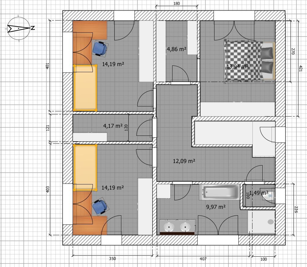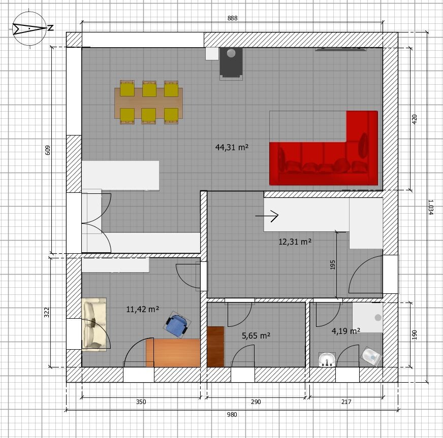 Haben auch versucht den Eingang auf die Seite zu verlegen, Resultat anbei.