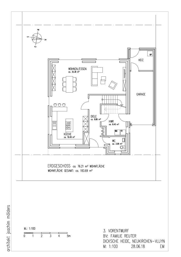 Hm... da ja die Heizungsanlage in der thermischen Gebäudehülle sein muss, wundere ich mich etwas über die Lage des Heizungsraumes. Nicht nur, dass die Garage somit auch in die thermische Hülle gebaut werden muss, sondern auch, dass der Heizungsraum der hinterste Zipfel des Gebäudes wird (lange Leitungswege).