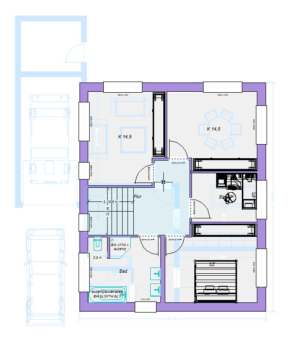Ich stelle ihn jetzt trotzdem ein, unten wie gesagt ähnlich zu kaho, oben würde euch ein Zimmer fehlen, da müssten evtl. die Wände der rechten Seite angepasst werden.Stimmt, der ist dem von @kaho674 ähnlich, wobei man oben schon einiges umgestalten möchte. Wir möchten gerne, dass die beiden Kinderzimmer entweder zur Süd- oder Westseite ausgerichtet sind.-SCEPS- schrieb: