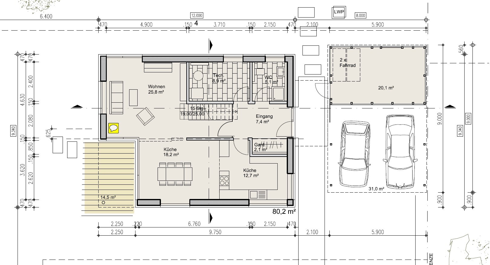 Du hast mit deiner Idee das ganze Haus kleiner gemacht und sie entspricht daher eben nicht meiner Anregung. Da ist nicht mal ein ordentlicher Garderobenbereich übrig geblieben. Und deshalb habe ich mich zu deiner Skizze(Idee) auch gleich gar nicht richtig geäußert.
