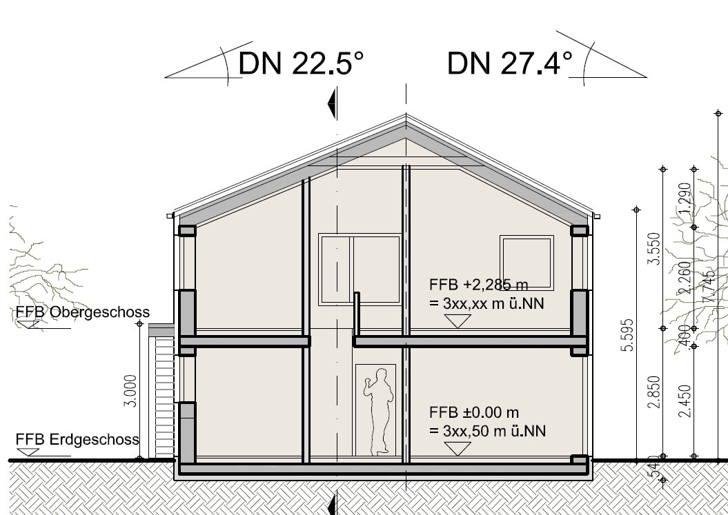 Wir sind mit unseren Planungen ein ganzes Stückchen weitergekommen und wollen mal unseren neuen Grundriss vorstellen. Wir haben jetzt im unteren Stockwerk kein extra Zimmer mehr und die Treppe hat einen neue Position bekommen. Die im Grundriss gezeichnete Küche ist nur ein Platzhalter. Wer hier noch gute Ideen hat, immer her damit.