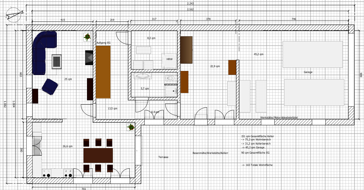 Im Moment ist unser jetziges "Büro" also das zweite Zimmer der Lebensmittelpunkt. Wir spielen gerne beide PC, mein Hobby ist auch digitales Zeichnen/Design bzw DvD schauen am PC. Daher wollten wir diesen relativ gross haben da wie den Großteil der Freizeit/Hobby darin verbringen. Ebenso ein großer Keller weil mein Mann schraubt leidenschaftlich an seinen 3 Moterrädern/Mopeds 🙂 Im Falle einer Erkrankung/Alt werden ist ein zusätzliche Zimmer im EG (ohne Treppen) sicherlich auch günstig um später einfach ein Bett reinzustellen. Unter 15qm möchten wir den also eigentlich nicht haben.