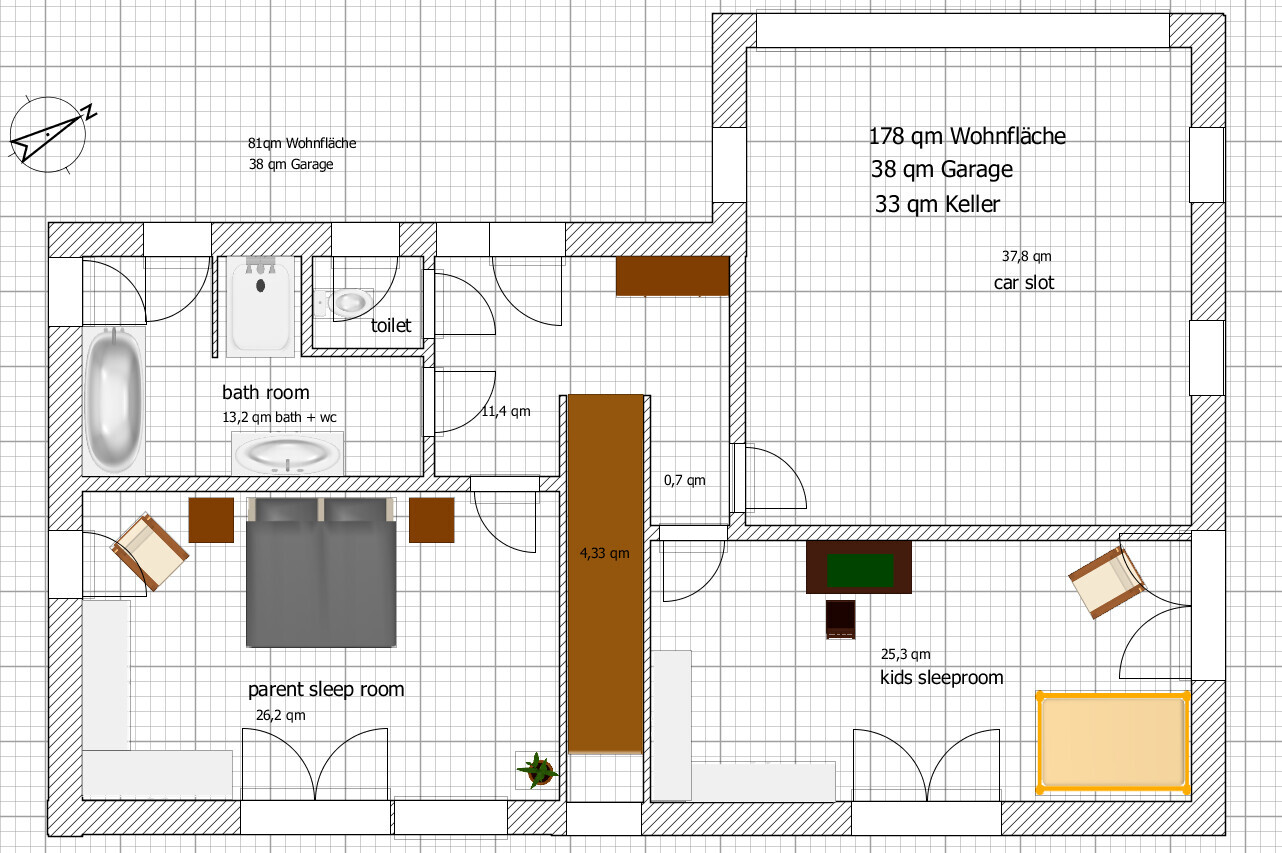 Meins ist der Entwurf auch nicht. Mal davon abgesehen, dass es nicht erklärend ist, wie EG zum KG steht (scheint ja etwas versetzt zu sein), finde ich keine Struktur.