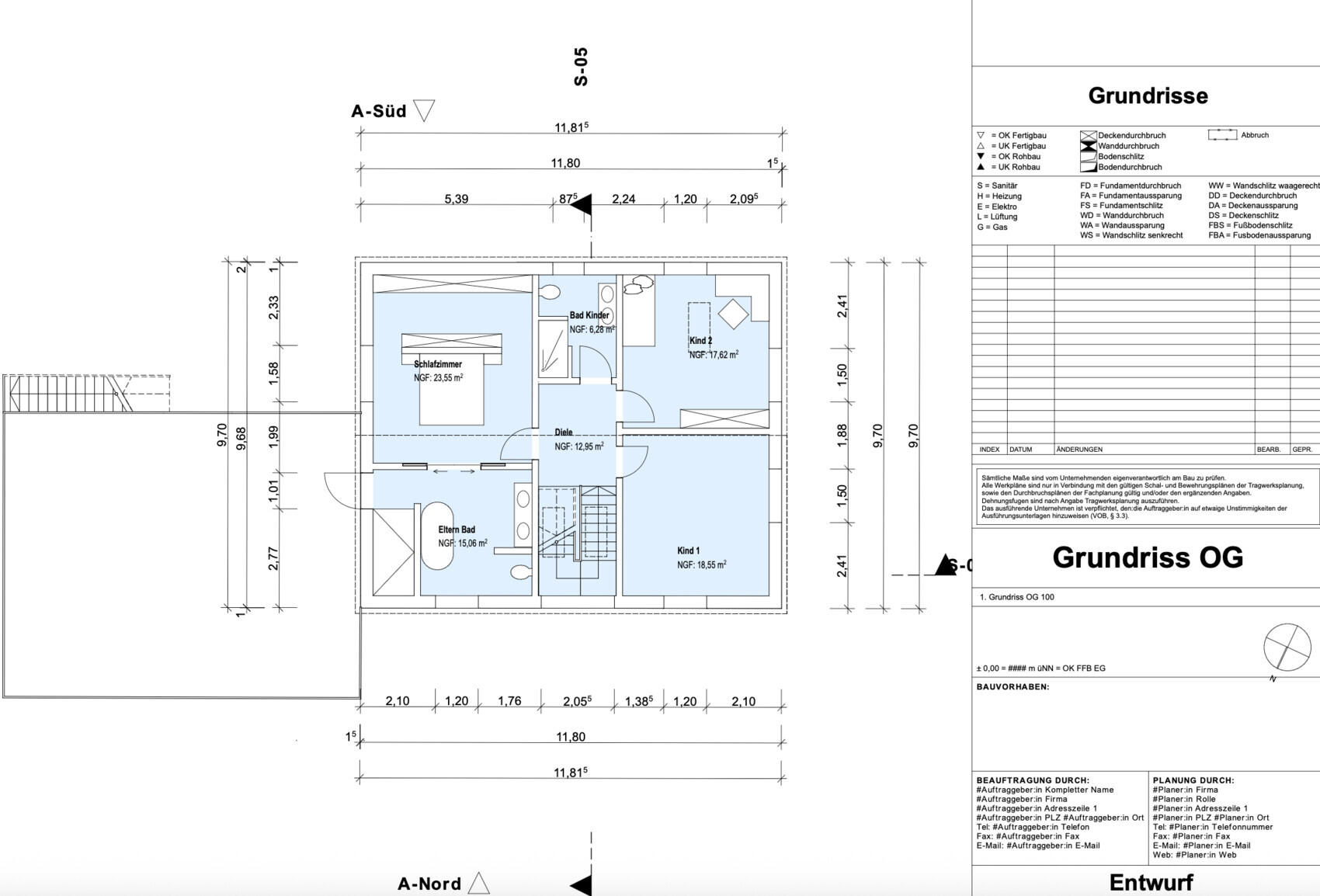 - Raumprogramm im OG überarbeiten, siehe oben. In dem Zuge auch das Elternbad für die Kinder mit nutzbar machen.