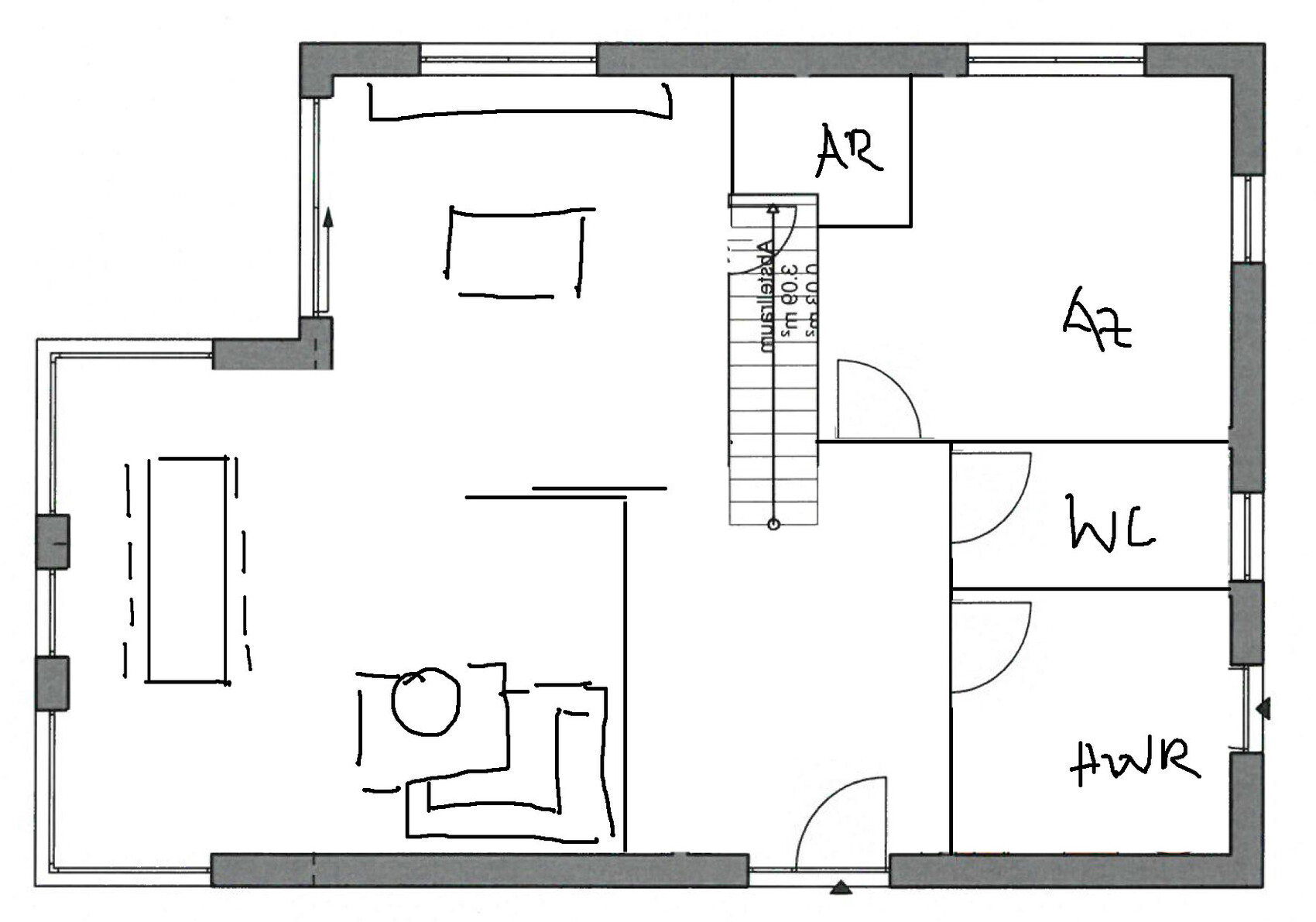 Im Vorfeld haben wir schon geklärt, dass die Treppe gedreht werden kann. Idee findet ihr anbei.Grundsätzlich find ich die Sache besser. Ich denke aber, dass die Treppe noch etwas länger sein dürfte, als von Euch gezeichnet. Links und rechts Geländer - mh - da entstehen schnell mal schmale Flure, mit denen man nicht gerechnet hatte, bei so einer mittigen Flurposition.Ähnliche Themen