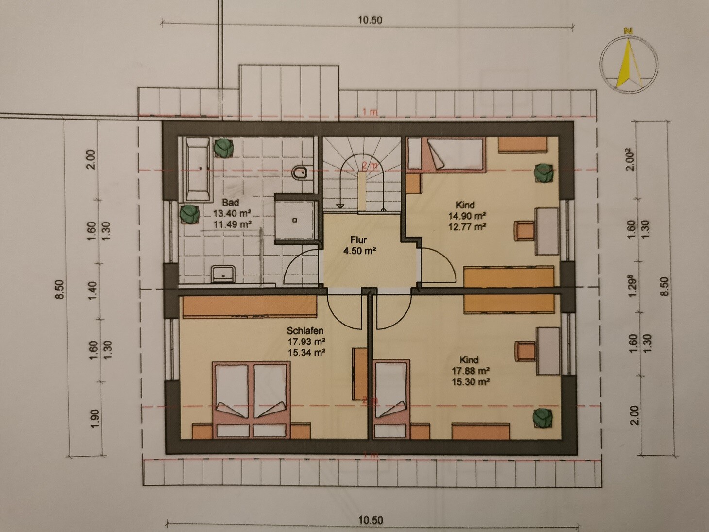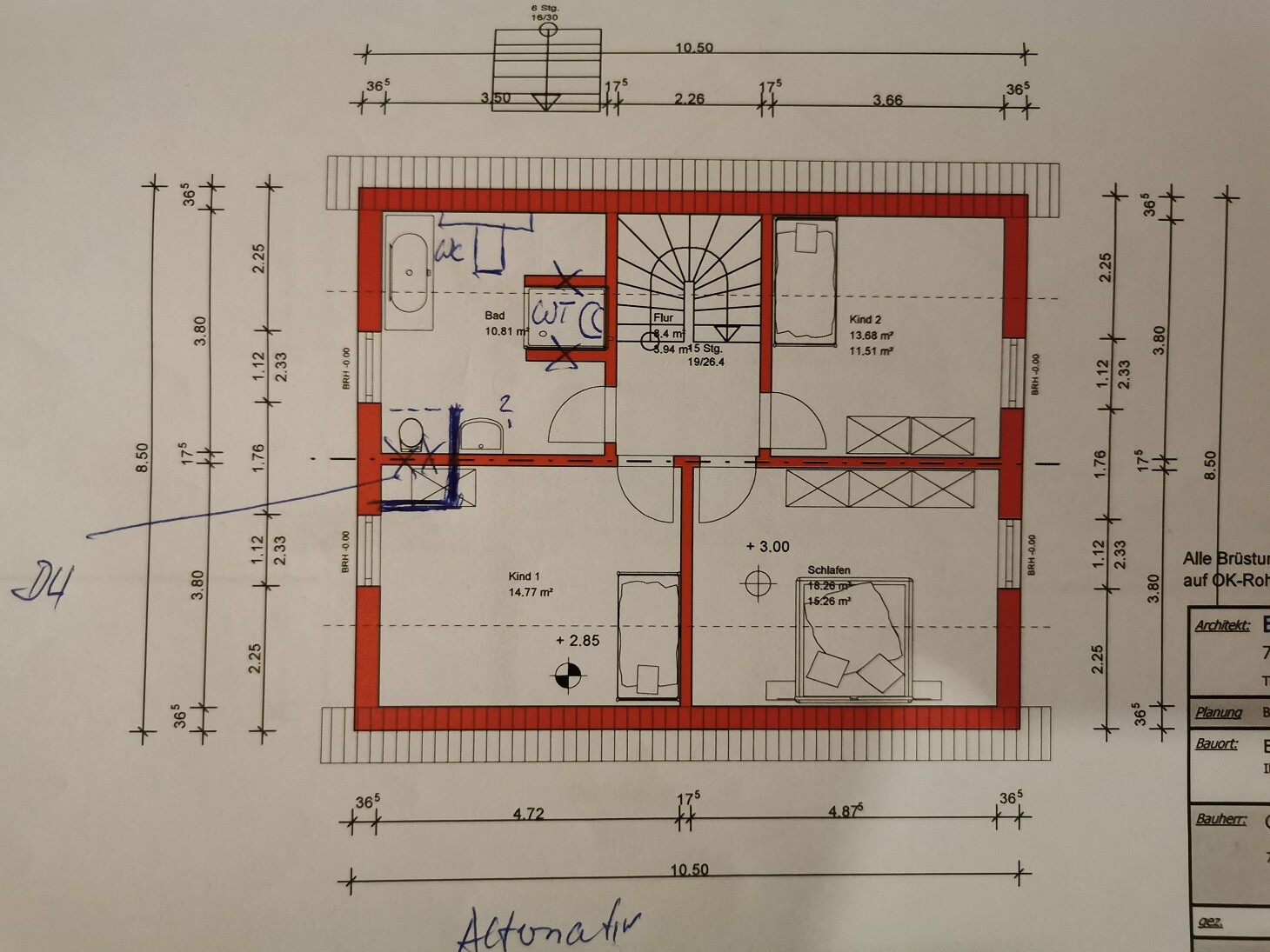Eine Türe in der Nische nimmt leider auch wieder Platz weg. Große Kinderzimmer finde ich wichtiger als ein riesiges Elternzimmer. Da ich nur zum Schlafen oben bin verzichte ich gern auf die m². Das Thema mit der Dusche und die Verschiebung des Fensters im Gästezimmer überlege ich mir noch mal. Danke dir!