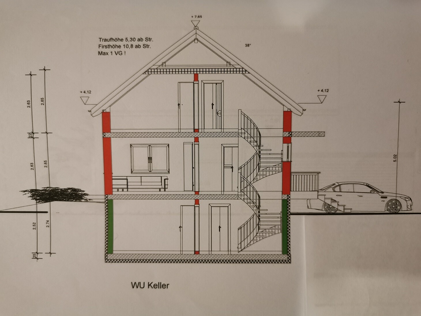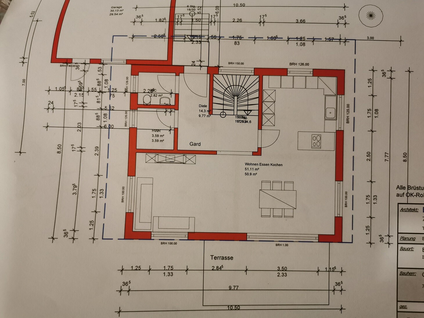 2. Wenn ihr euch die Querschnitte von GU und Architektin anschaut seht ihr unterschiedliche Raum- und Fürsthöhen. Hat der GU sich verplant?