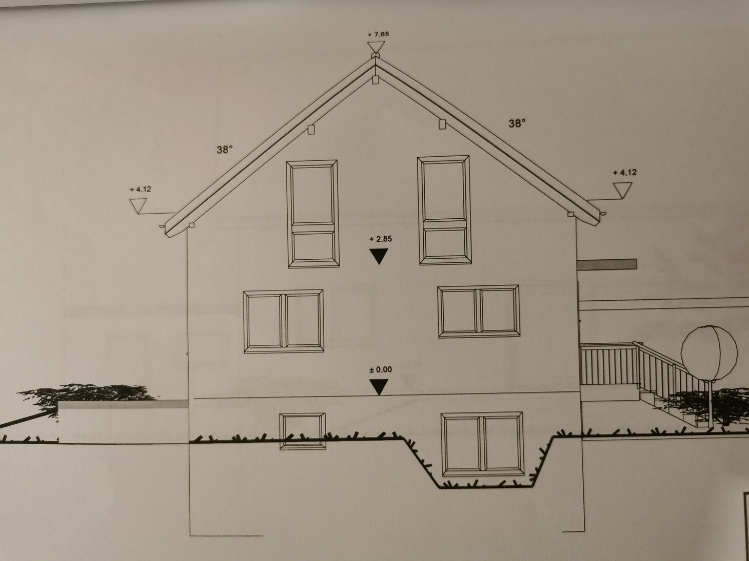 2. Aufgrund der mittleren Hochwasserhöhe ist eine weiße Wanne notwendig und das Haus ragt ca. 70-80cm gegenüber der Straße heraus. Eingangstreppe erforderlich, Terrasse abfallend, Kniestock 125cm, Räumlichkeiten im DG sind meiner Meinung nach alle zu klein, Dachspeicher nicht nutzbar (gut im Keller wäre ja genug Platz).