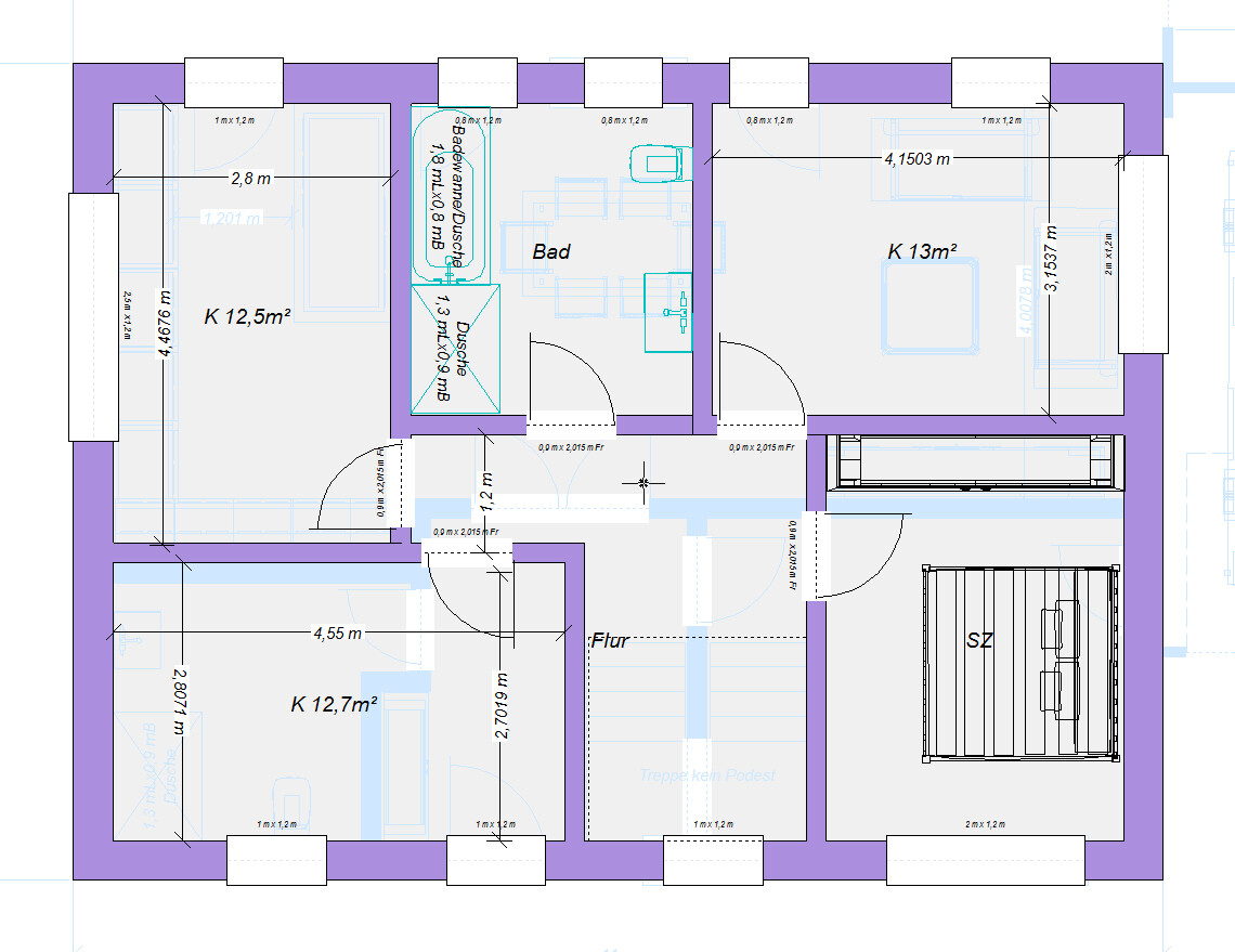 Ich wundere mich gerade wie Du die Podesttreppe da reinbekommst. Wir haben die gleichen Maße und keinen Hauswirtschaftsraum, kriegen aber aus „Platzmangel“ keine Podesttreppe mehr rein. Zur 1/2 gewendelte Treppe würden ja noch 80cm Podest an Tiefe hinzukommen.Ich bin verwirrt und ein wenig neidisch.