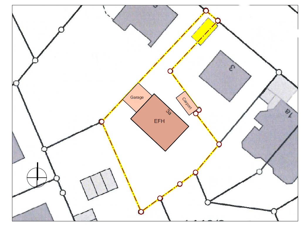 Größe Grundstück insgesamt ca. 730 qm, davon 80 qm Zufahrt.