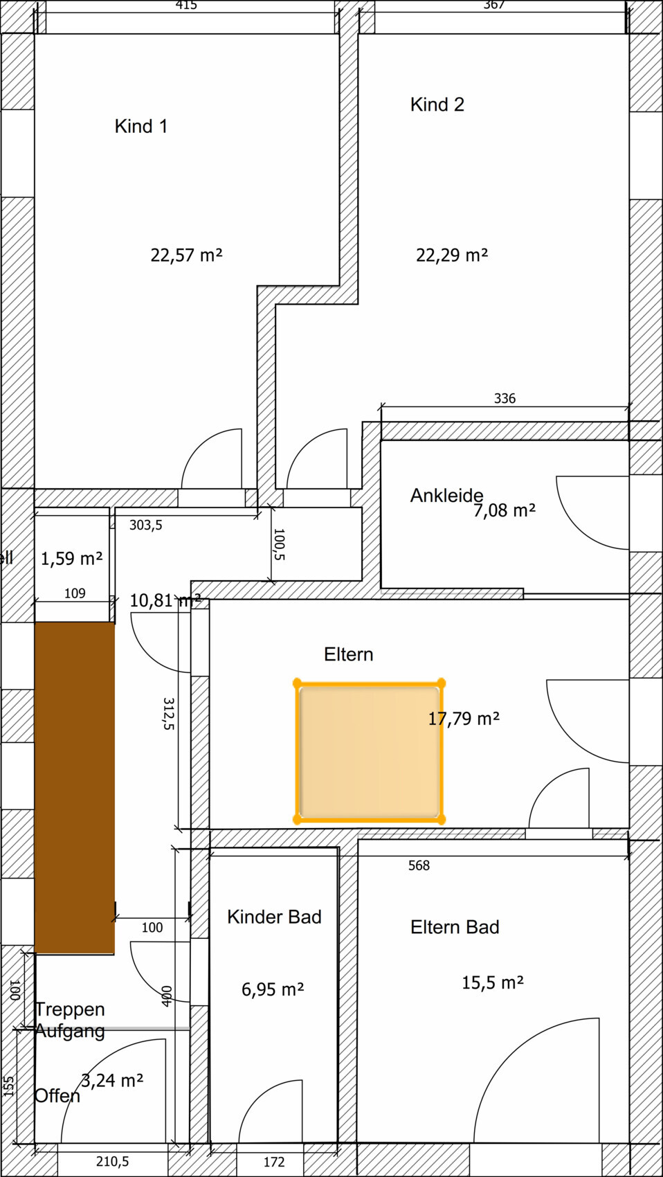 Das sieht aus wie das ERH meiner damaligen Großeltern aus den 50er Nachkriegsjahren, nachdem es 3 mal für mehrere Generationen umgebaut wurde Nein, wirklich! Nur das Grössenwunder WZ müsste noch einmal unterteilt werden...