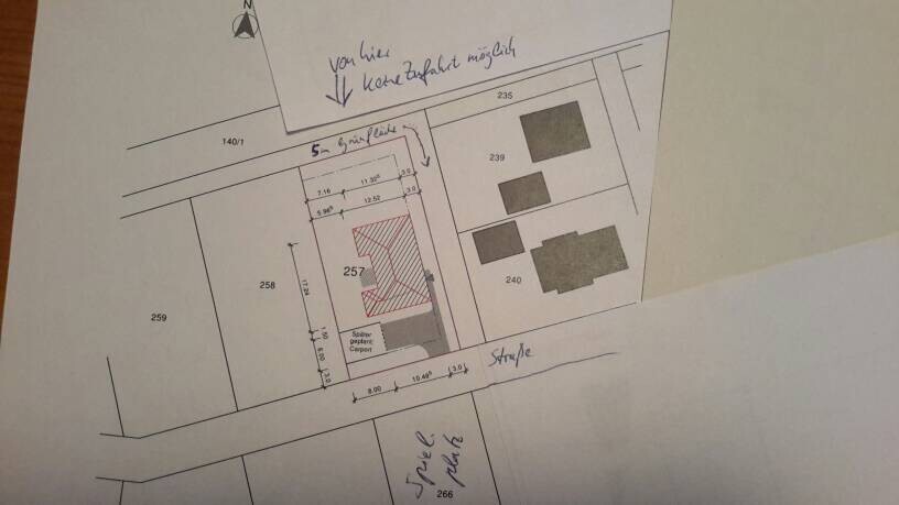 Jetzt noch mal der Lageplan mit dem darauf geplanten Bungalow. F