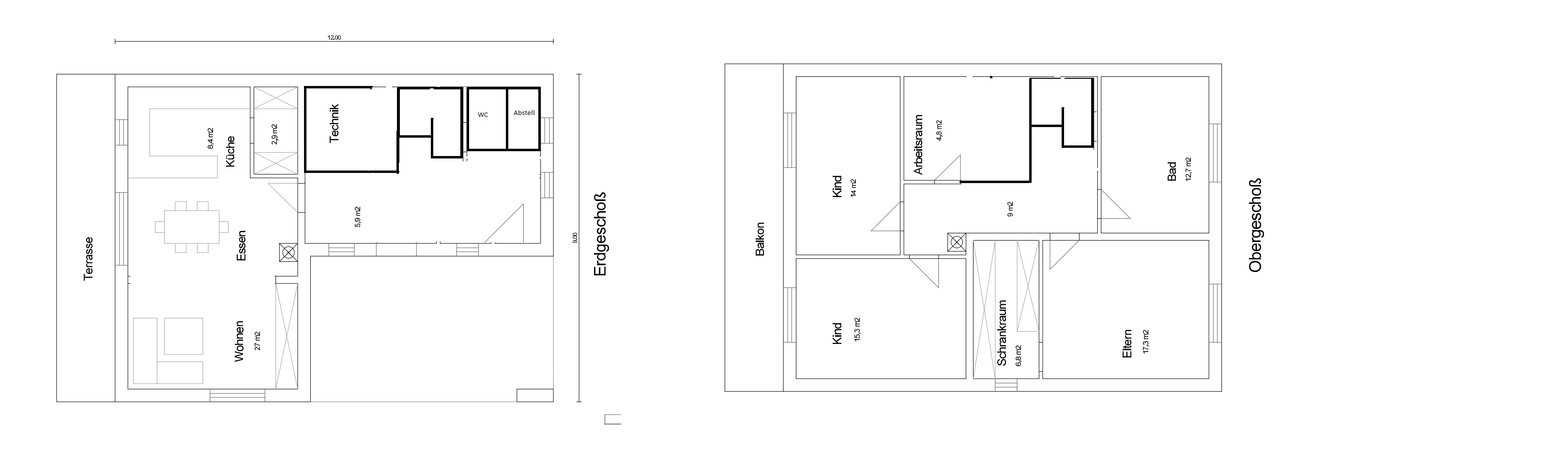Getrennte Toiletten muss man mögen, dann aber bitte nicht zu eng. Man sollte sich noch drehen können, damit man diese nach Benutzung auch putzen kann. Für das EG finde ich die Bad-Geschichte überflüssig, wenn eine Dusche gewünscht, kann man die Toilette dort integrieren. Schon hat man Platz für einen Besenraum oder Schuhkammer.