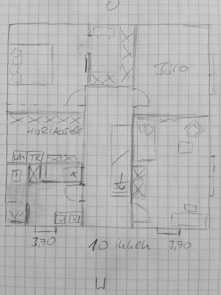 Und durch das Karopapier werden auch gleich die Raumverhältnisse abgebildet, auch ohne großartige Vermassungen