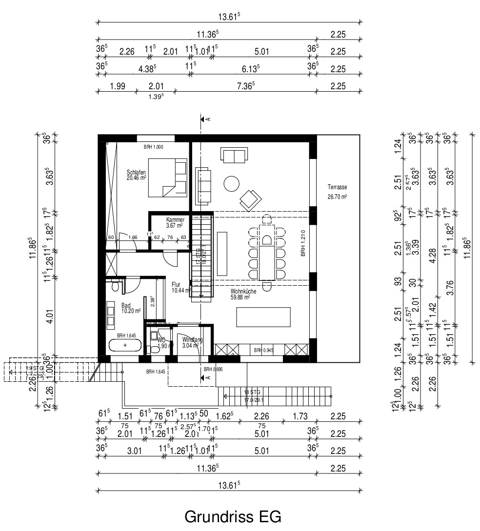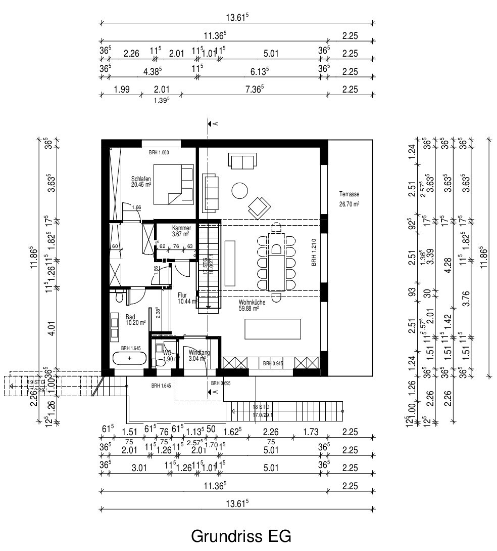 Wär es meins, flöge die heilige gerade Treppe und die Kammer raus. Stück vom Keller würde abgeknappst für die 1/2 Gewendelte. Aber das ist natürlich Geschmackssache - zumal dann natürlich der Platz in der Kammer fehlt, wozu auch immer er gedacht war.