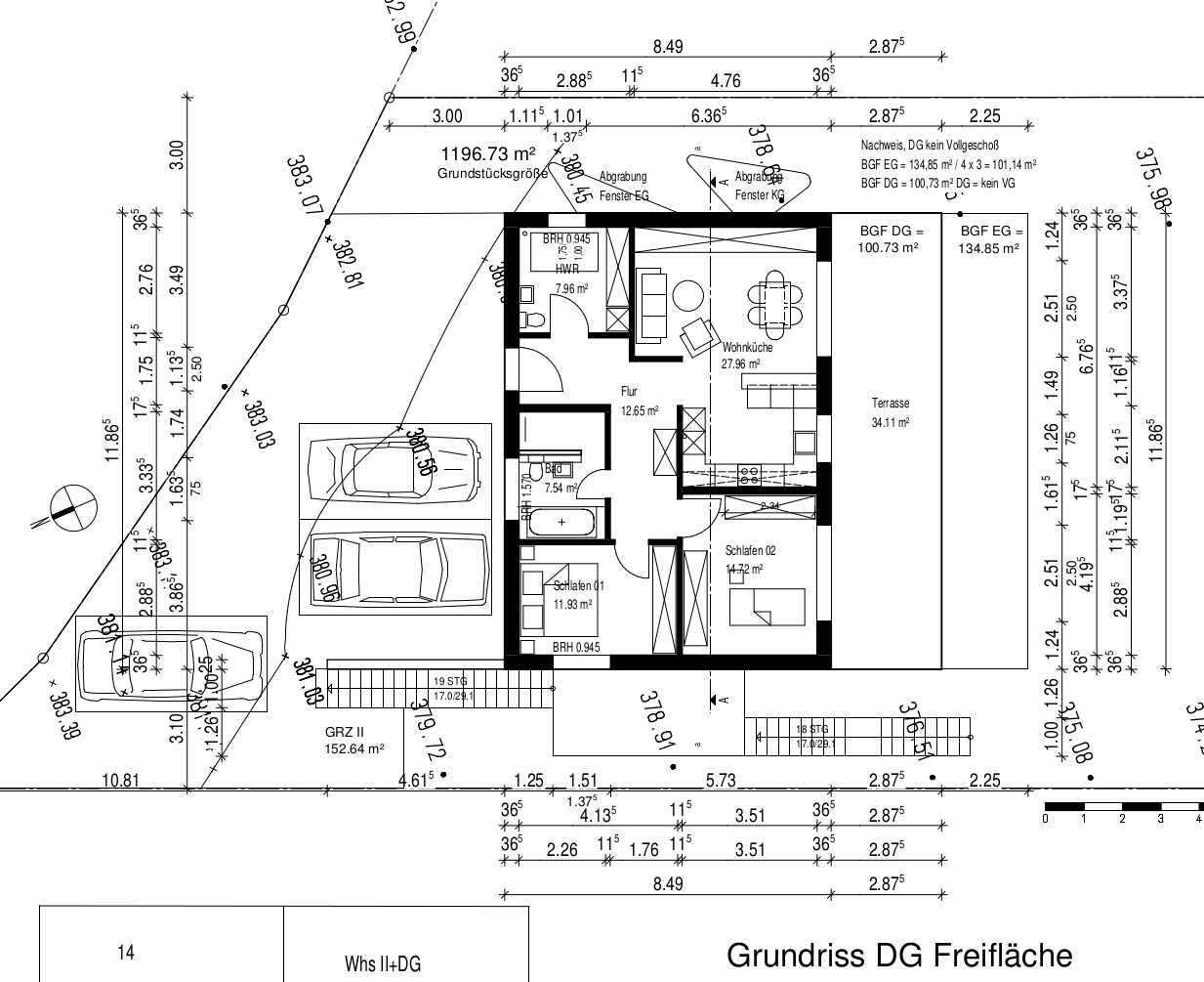 Mit der Behörde war wirklich nicht gut Kirschen essen. "Geringfügige Abgrabungen" gibt es für die Behörde nicht. Schlussendlich wurde der Bauantrag zurückgezogen und ein neuer eingereicht, der nun genehmigt wurde. Als Ausweg wurde das KG Richtung Norden vergrößert.