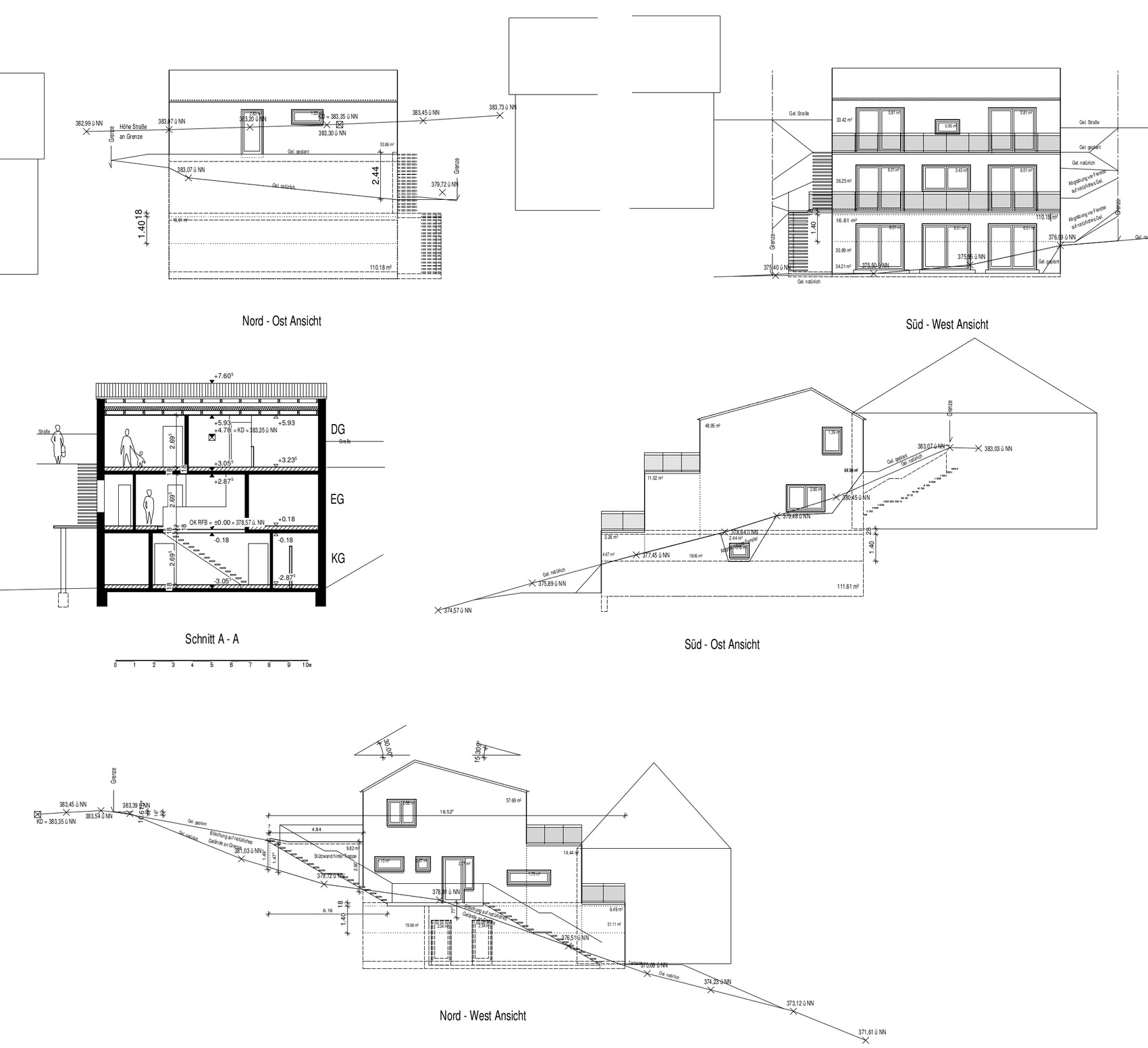 Anbei nun die aktuellen Grundrisse und Ansichten/Schnitt.
