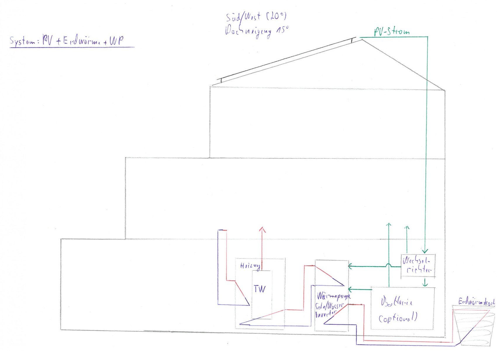 b) Wärmepumpe die durch Photovoltaik und Erdwärme betrieben wird