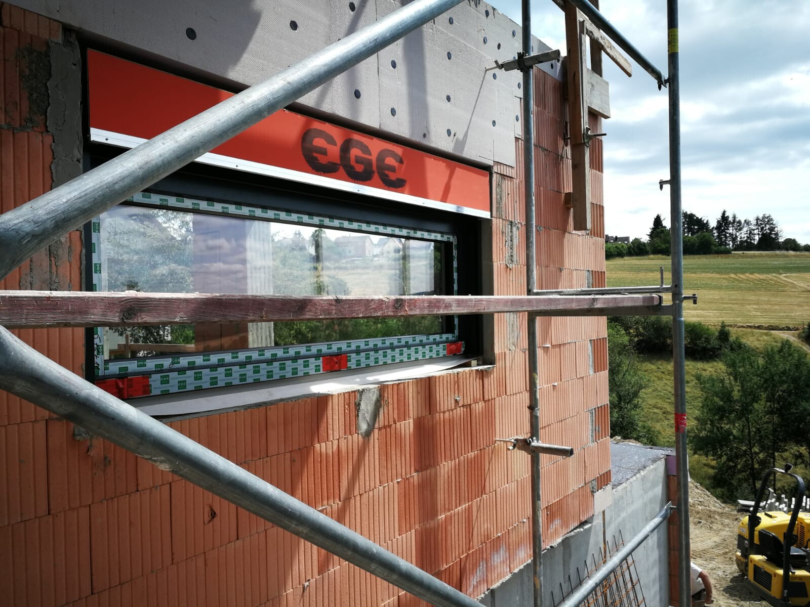 Alle "kleinen" Fenster und die Haustüren sind eingebaut. Wichtig sind nun die großen Fenster, vor allem im KG. Denn dort muss die Dampfsperre rein, um dann mit dem Estrich zu beginnen.