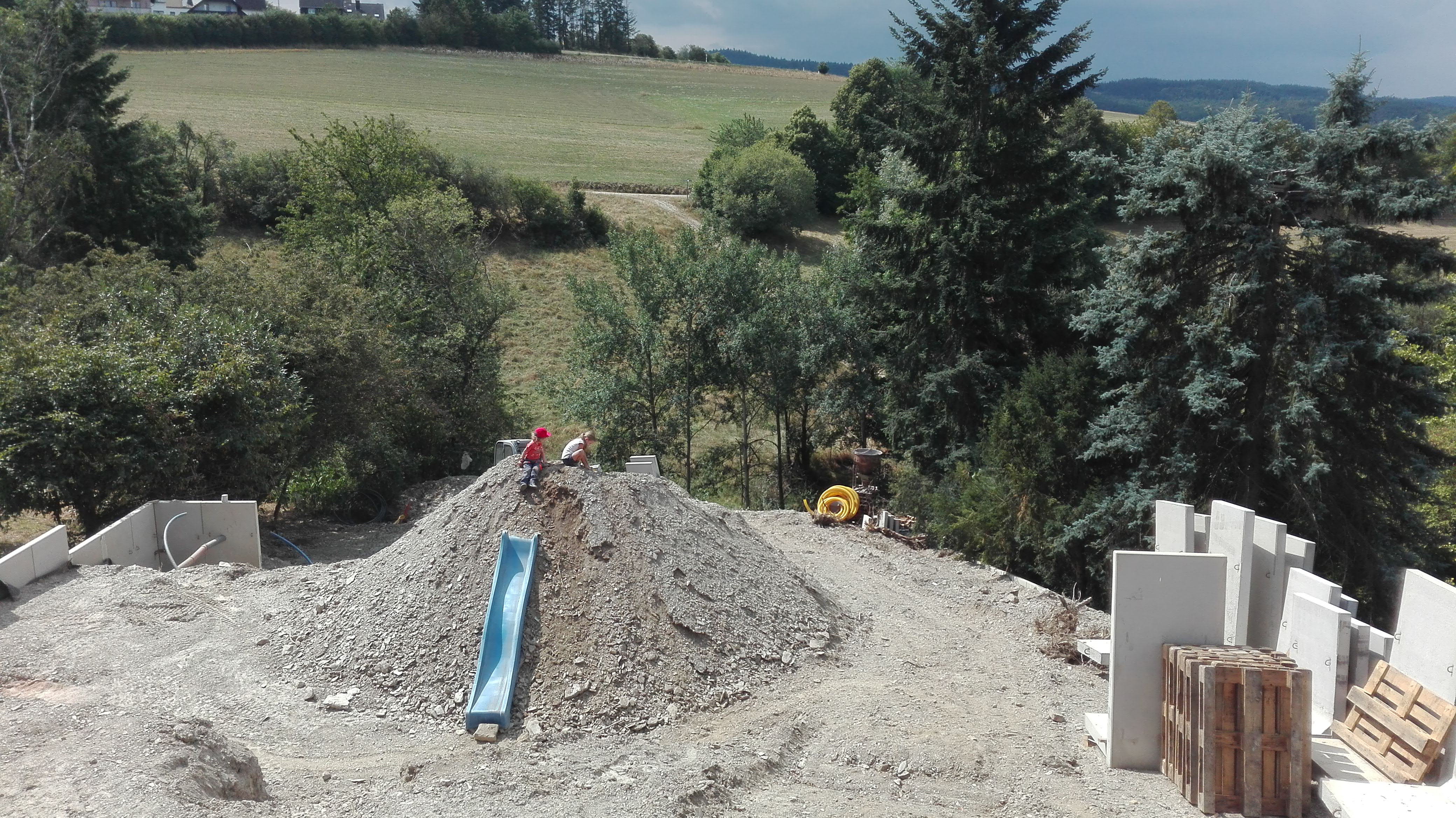 Vier der sieben Schiebetüren müssen neu geliefert werden. Soll sechs Wochen dauern. Drei haben wir aus Kulanz abgenommen. Es sind die der untersten Etage für die Kinderzimmer. Die Durchgangshöhe ist lediglich 2,05m, sollte aber ausreichend sein. Bei jedem anderen hätten wir auf Tausch aller Fenster bestanden. Einen Vorteil haben wir dadurch nicht. Es wäre denkbar gewesen mit dem untersten Geschoss nun in punkto Innenausbau weiter zu machen und dies getrennt von den beiden oberen Geschossen, aber es kommt nun insgesamt zum "Stopp".