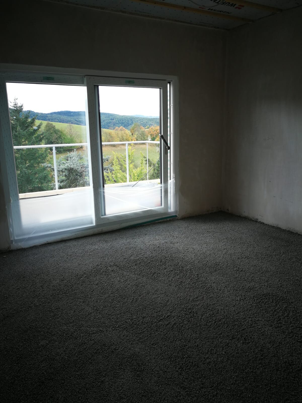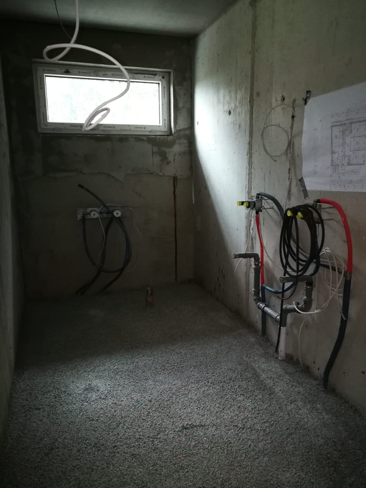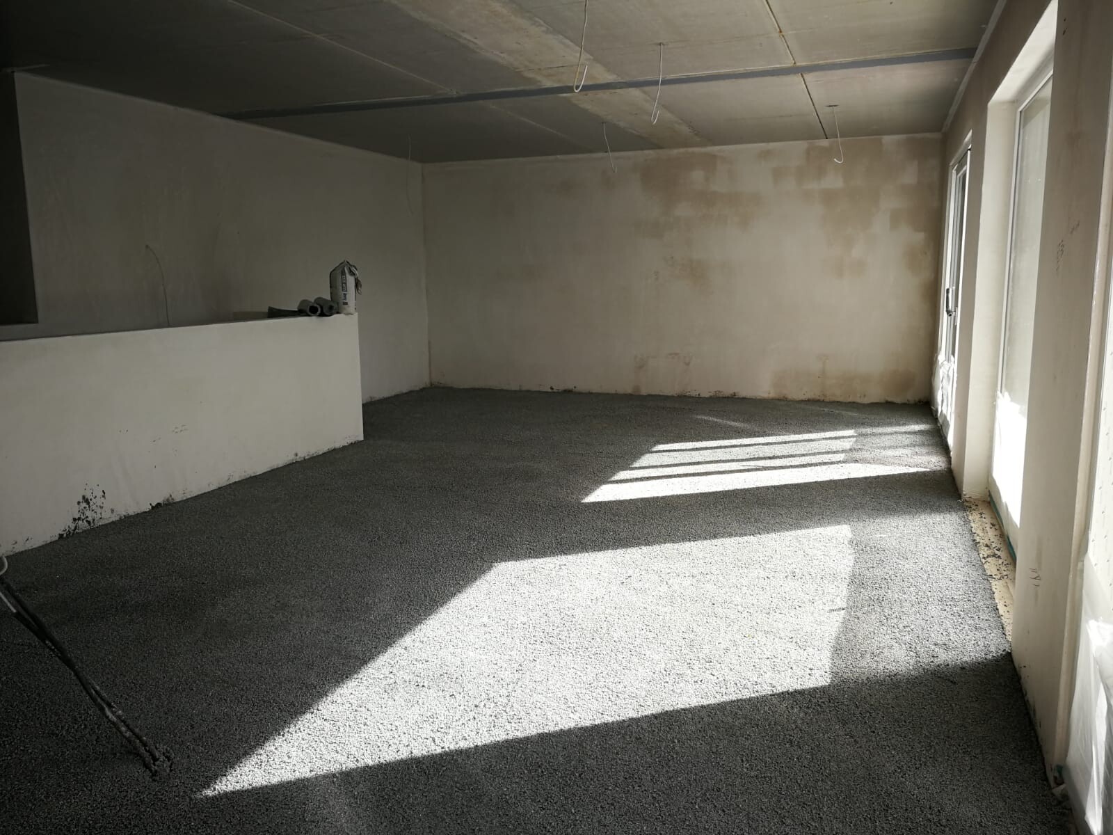 Die erste Estrichschicht der beiden oberen Etagen ist dank Leichtbeton drin. Werden insgesamt 28,5 cm. Ca. die Hälfte ist somit geschafft. Nun Dämmung und Fußbodenheizung rein und weiter geht's mit dem Endestrisch. Im KG kommt lediglich die Endschicht mit knapp 18 cm.