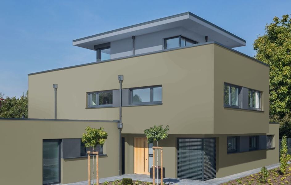 Generell. Eine "Knallfarbe" sollte es nicht werden, da das Gebäude im Vergleich zur Nachbarschaft schon etwas größer wirkt. Die Satzung sagt: "Die Außenflächen der Gebäude sollen hellen Putz, keine grellen Farben, Verklinkerungen oder Holz aufweisen" (Anmerkung: Ich interpretiere es so, dass heller aber nicht greller Putz verwendet werden darf. Verklinkerungen oder Holz ohne Farbvorgabe sind.