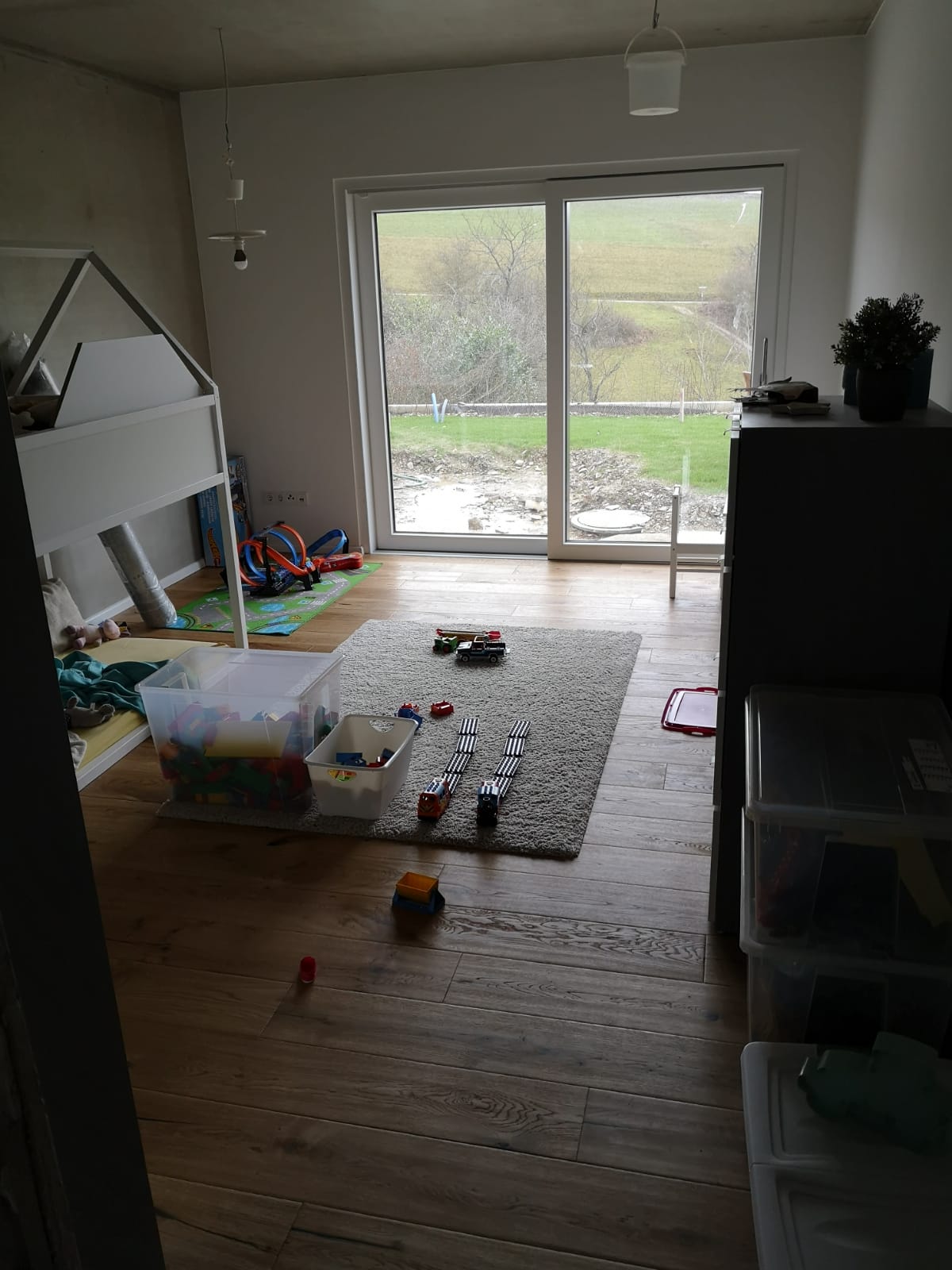 Was macht der Eimer unter der Decke in dem einen Kinderzimmer? Tropft es da noch?