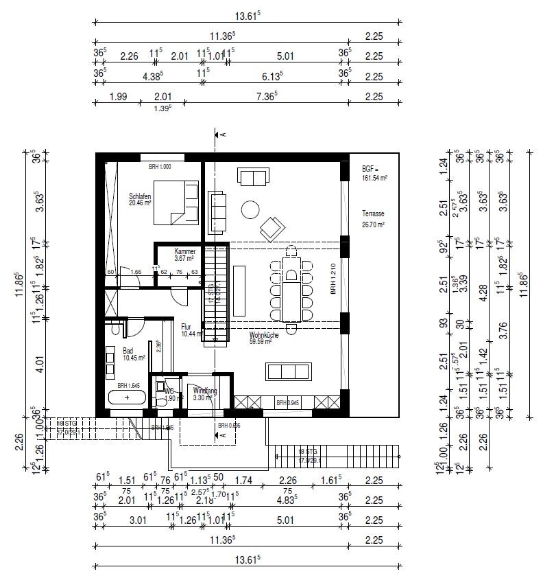 Bei den Ansichten haben wir sogar etwas getüftelt, damit wir von der Südseite alles symmetrisch habenIch würde sagen, erstens wohl etwas vertüftelt, und zweitens vermutlich gerade damit geschadet, wo es nützen sollte. Der "Suchbildfehler" daß eine Fenstertür nur einflügelig ist, würde ohne die Strenge des Taktes in dem sich die anderen acht genau Gleichen wiederholen weit weniger auffallen. Und ich habe auch schon in anderen Threads gesagt, daß das typischerweise einen bilderbuchmäßigen Schuß nach hinten gibt: die Symmetriepriorität erreicht meist im Ergebnis daß es aussieht wie Pseudoästhetik für Architekturlegastheniker, aber gewollt war eher das Gegenteil (daß es nett aussieht). Zum Beispiel kann man eine Art antiproportionalen Effekt feststellen: je strenger man auf Symmetrie achtet, desto stärker fallen ungelenke Proportionen auf.Entwickelt die Fensteranordnungen lieber von innen und harmonisiert (nicht symmetriert !) sie dann am Außen.