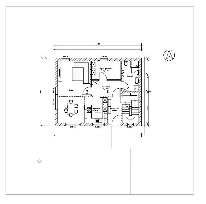 so ich probiers auch mal. Wir haben ein Grundstück mit Zufahrt von der Südseite gekauft, die Auswahl war nicht wirklich vorhanden und wir sind froh zumindest, dass ein Zuhause für unsere Familie zumindest mal in mögliche Nähe rückt. Die Detailplanung gestaltet sich dann doch nicht so einfach. Wie gesagt die Südseite unseres Hauses wäre zur Straße ausgerichtet und von daher sind die meisten Grundrisse der Fertighausanbieter nicht gleich umsetzbar. Wir haben einen Vorschlag vom örtlichen Bauunternehmer und dessen unterstützendem Architekten bekommen. Das hat mich final auch noch nicht überzeugt (wesentliches ist vorhanden außer Eingangsbereich und Treppenhaus) und ich habe mir selbst Gedanken gemacht - vllt auch einfach um bei der Vorstellung klarer zu werden. Da wir mit Keller bauen und auch aus den Erfahrungen unser bisherigen Mietwohnung wäre eine gerade begehbare Treppe wünschenswert. Da unsere Wohnung aktuell komplett offen gestaltet ist, tendieren wir eher zu einem geschlossenem Raumkonzept über die Etagen hinweg.