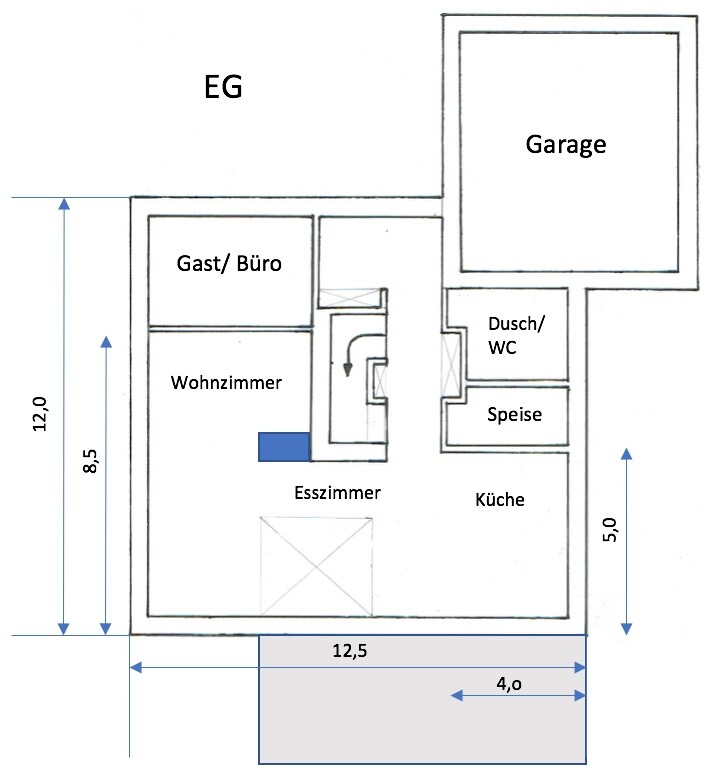 Vielleicht findet Ihr ja ein paar Minuten Zeit und könnt unsere Zeichnung vom Grundriss etwas durchleuchten.
