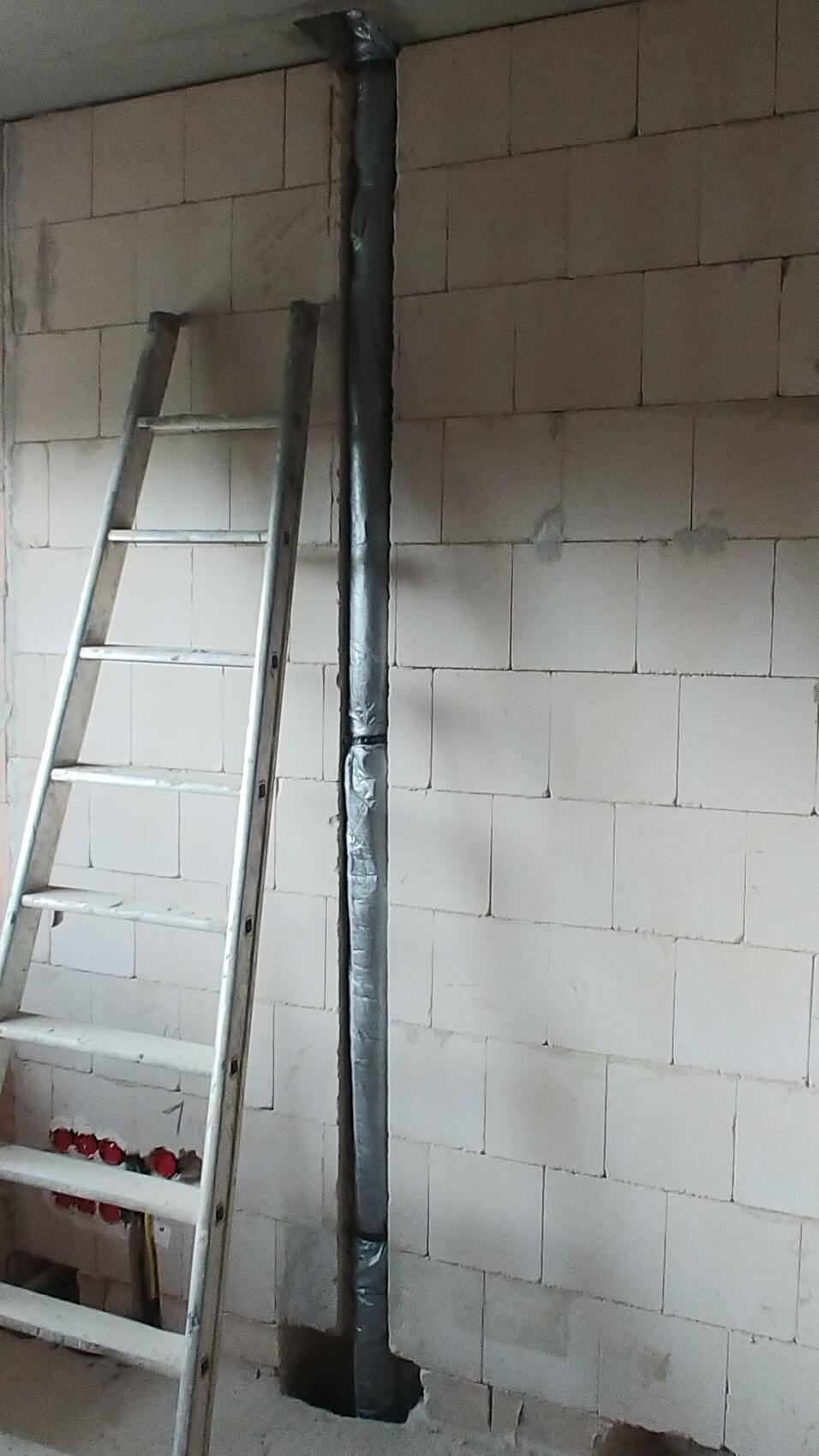 Ich hatte noch vergessen, mitzuteilen, dass das Rohr, das so viel Ärger verursacht hat, nun endlich in seiner Zielposition liegt! Es ist in der Decke verzogen worden.