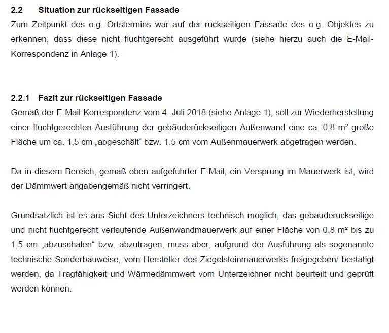 Die Rückwand sieht man aktuell nicht mit bloßem Auge. Aber der Bauleiter sagt, das liegt nur am unverputzten Zustand. Wenn das verputzt ist, wird man es sehen und dann wird es stören. Wäre dem nicht so, hätte er das sicher nicht freiwillig erwähnt, selbst wenn es ihm aufgefallen ist.