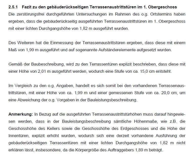 Die Terrassentüren, ok das es jetzt sogar nur 1,99m sind ist dann auch wieder doof. Bei der Stufe frage ich mich allerdings, die dürfte sich ja normal auf den Fertigfußboden beziehen oder nicht? Es sind jetzt ~25cm, kriegst du dort nur 5cm Fußbodenaufbau? Ob man dir die Türen nun höher hätte anbieten müssen, das müsste wahrscheinlich dann ein Richter klären. Nebenbei müsstest du dann wahrscheinlich auch nachweisen das es nie so angeboten wurde.