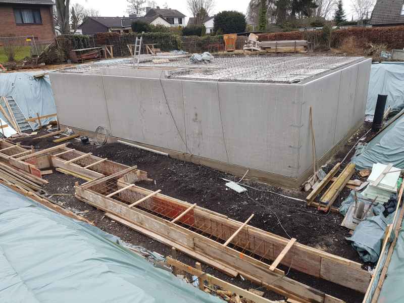 Der Bauleiter hat angerufen. Er ist im Urlaub und morgen wird sich ein Vertretungsbauleiter bei mir melden und die Baustelle aufsuchen. Ich komme dann dazu. Er sagte, er kann sich absolut nicht vorstellen, dass durch den WU Beton was durchkommt und dass das Haus im Keller nicht dicht ist. Er hat die ganze Zeit darauf geachtet, sein Gutachter hat den Keller vor Verfüllung abgenommen, unser Gutachter hat selbiges gemacht und sogar noch gelobt, wie gut der Keller gemacht wurde. So sah das Ganze aus: