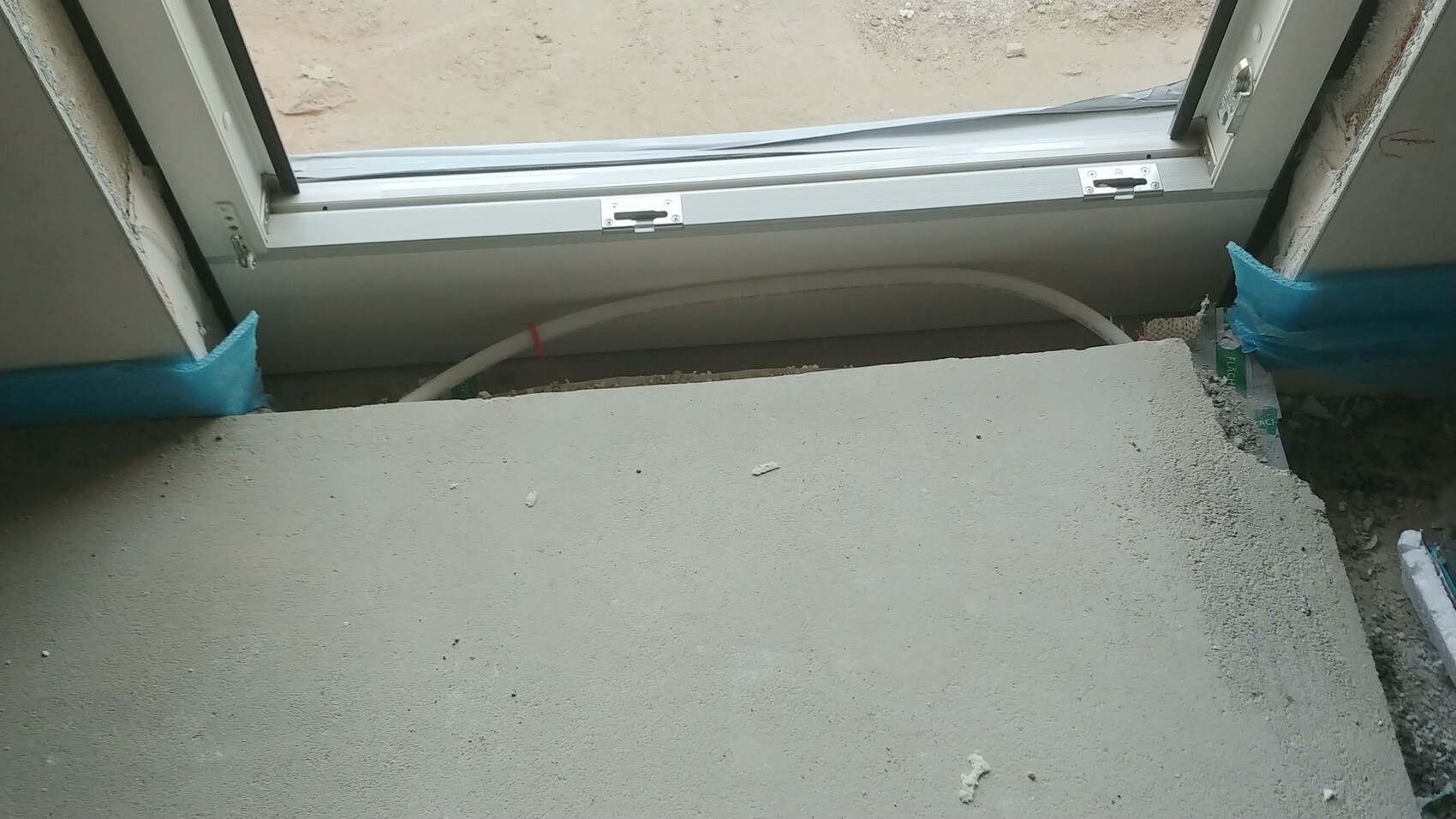 Ich frage mich, ob das so in Ordnung ist, dass der Lüftungsauslass nun direkten Fensterkontakt hat und dass Rohre der Fußbodenheizung einfach mehr oder weniger abgeknickt wurden und ebenfalls unmittelbar am Fensterrahmen anliegen. Gibt es dazu auch einschlägige DIN? Oder stört das so nicht?