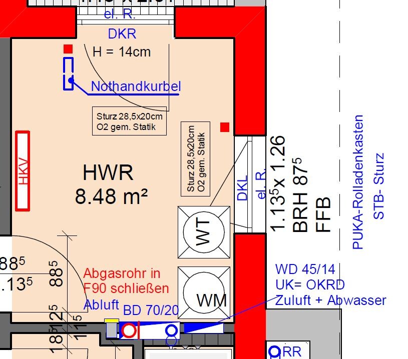 War denn die Position abgesprochen?Ich glaube, man kann es schon so aus der Werkplanung herleiten; Sinn macht es für mich aber keinen. Ich hätte das jetzt so gelesen, dass das Wasser dort hochgeführt wird aber dass dort auch neben statt hinter der Waschmaschine der Anschluss aus der Wand guckt, finde ich schwachsinnig. Aber ansonsten bin ich bei dir; es gibt wichtigere Probleme.