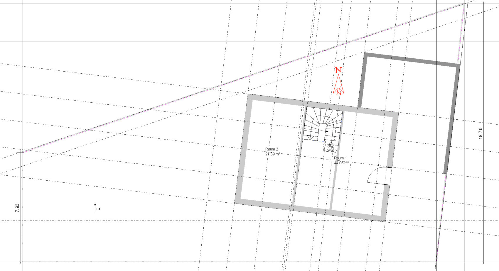 Ich habe ... ein paar Maße eingefügt, ich hoffe das ist hilfreich. Leider nicht sehr.Lass doch Deinen Architekten was entwerfen! Wieso mühst Du Dich selbst?