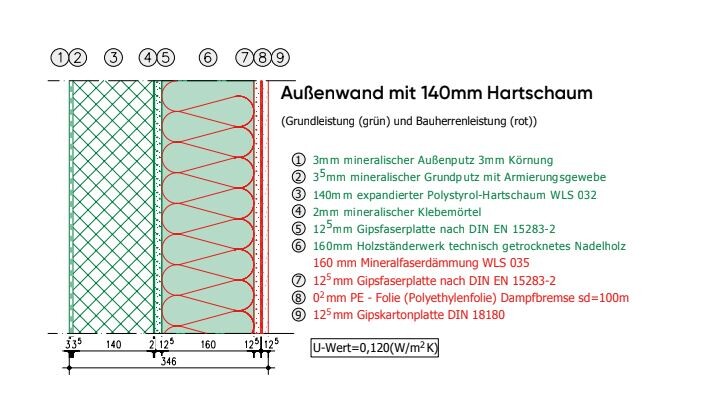 Richtig es ist ein Massahaus, anbei auch nochmal der Wandaufbau.