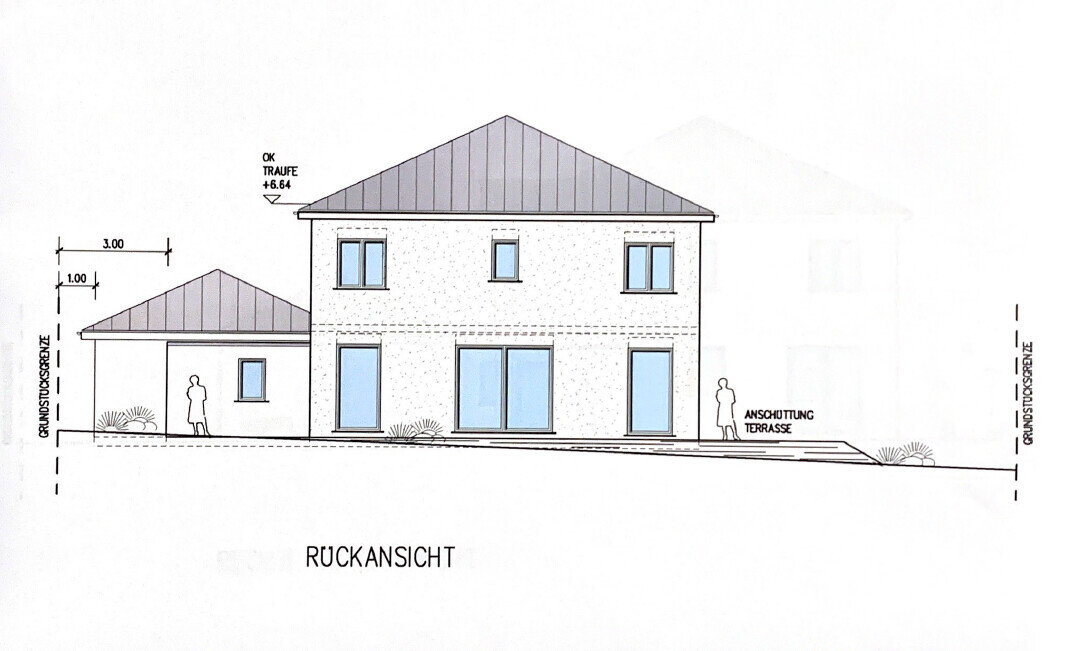wir haben in der vergangenen Woche den ersten Entwurfsvorschlag unseres Architekten für den Neubau eines Einfamilienhaus mit Doppelgarage erhalten.