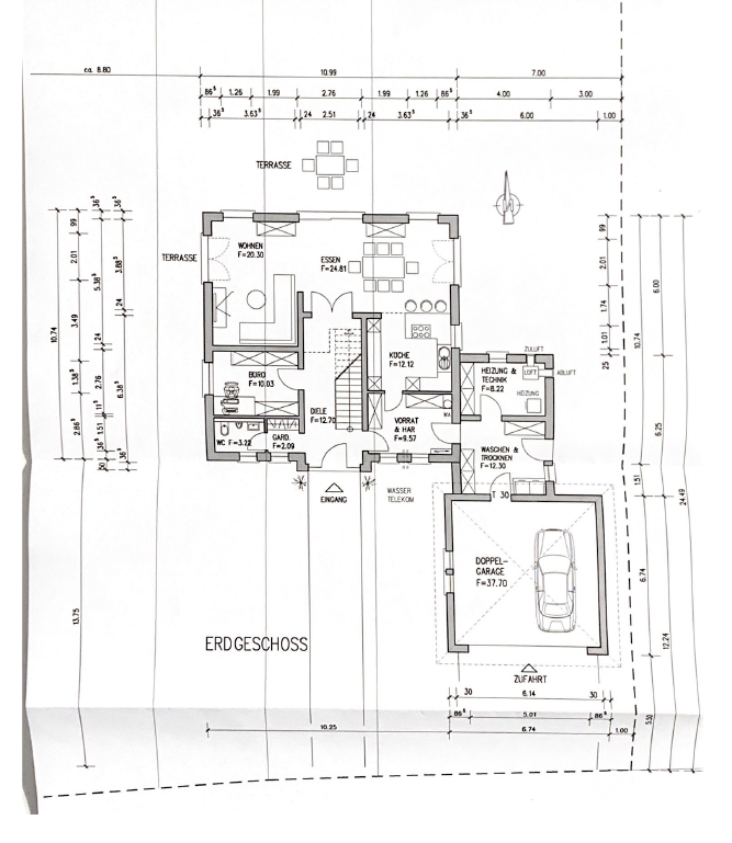 Hang: leicht ansteigend Richtung Norden, jedoch keine Auswirkungen auf Grundriss bzw. Gestaltung