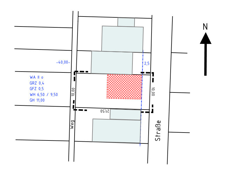 Wenn das Mittelgrundstück aber auch die Stellplatzpflicht hat, bleibt ja eigentlich gar nicht viel anderes, als die Häuser eben nicht 2,95 m von der Straße entfernt beginnen zu lassen (bisheriger Plan), sondern die Häuser müssen weiter ins Grundstück rein. Oder es wird mit dem Versatz gebaut.