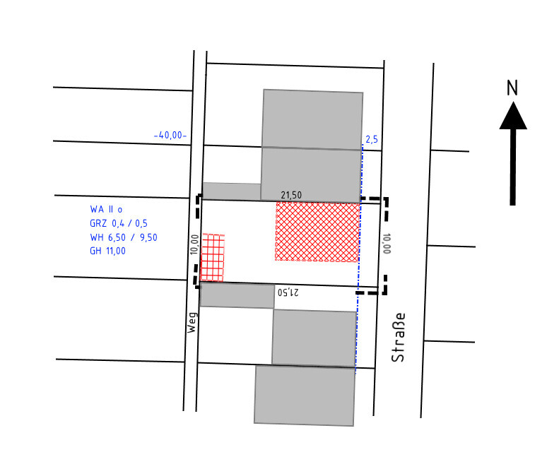 Das ist in meinen Augen mehr als grenzwertig dieses Grundstück.Dafür kostet es auch nur 70k.Hier mal Variante Fort Knox mit gelöschter Geschossflächenzahl, die gar nicht festgesetzt ist und sich trotzdem in meine anderen Pläne eingeschlichen hat: