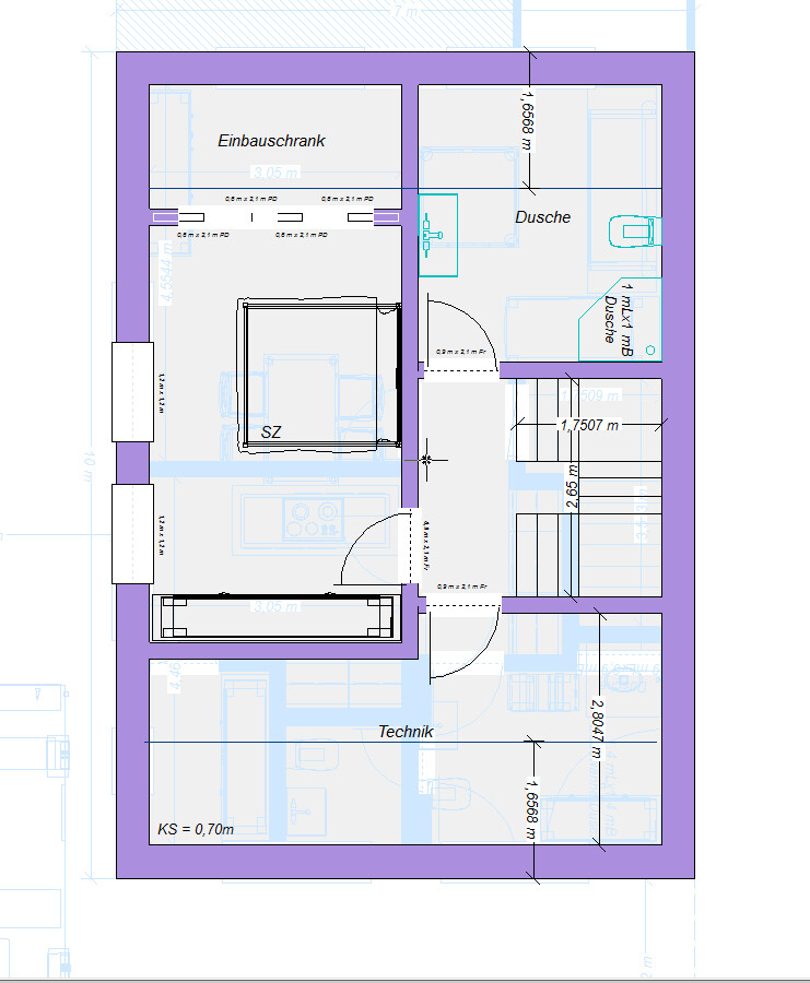 Was mir leicht unklar ist, sind die Höhen. Laut Ausgangs-Entwurf liegt die TH bei 6,50m. Der Kalksandstein sieht mir aber eher zwergig aus. Sind da die Raumhöhen exorbitant? Bei so einer kleinen Grundfläche geh ich vereinfacht von folgenden Höhen (in m) aus:
