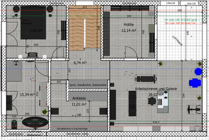 Dass im OG Constraints hinsichtlich Raumaufteilung und Position der Sanitärobjekte bestehen was die Dachschrägen angeht ist klar.