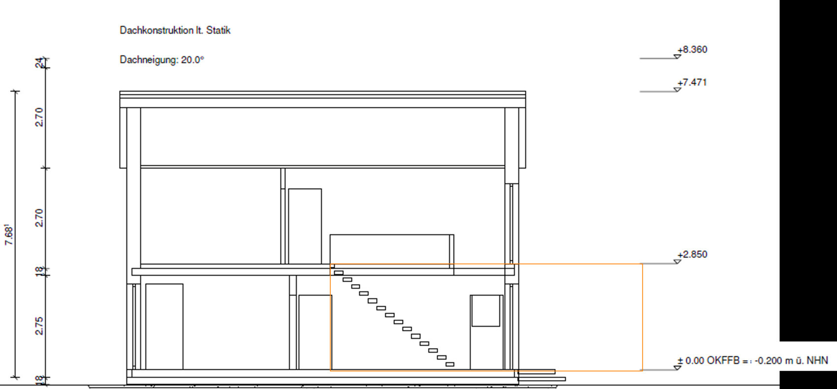 Und welches Stufenmaß hatte die von dir übertragene Treppe?Geschosshöhe ist unverändert gem. des Querschnitts den ich mal geteilt hatte. RBM 2,70m und lichte Raumhöhe dann ca. 2,50m. Die verwendete Treppe hat 6+1+6 Stufen und 1,93x2,70m.