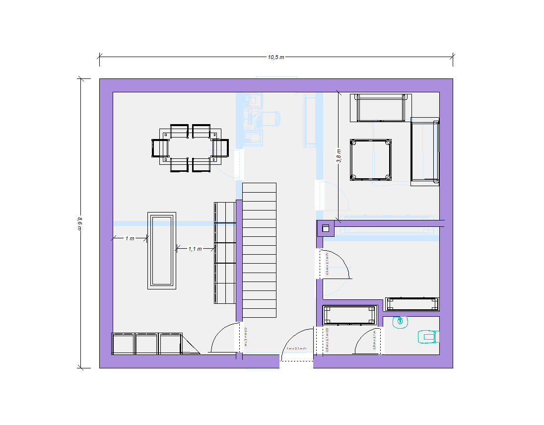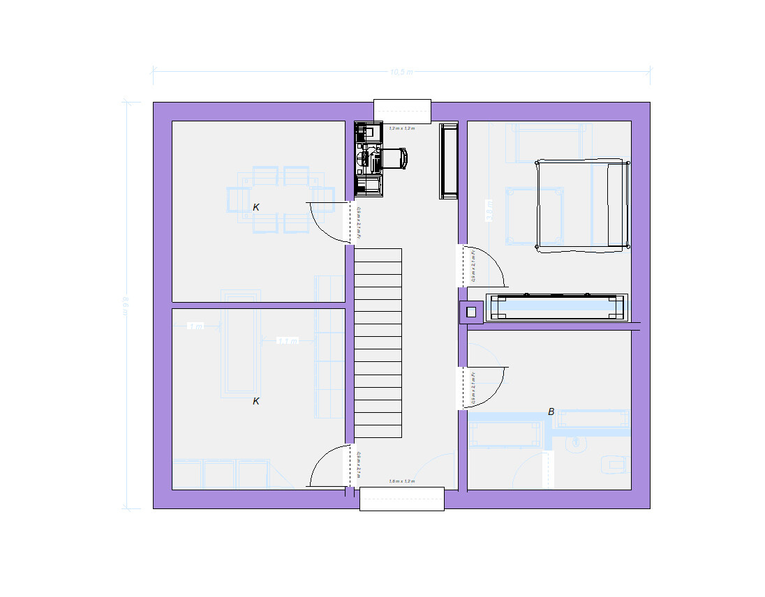 Ja, der Grundriss aus #77 ist für diese Hausgröße wohl zu verschwenderisch. Da fehlt dann der Platz im Wohnzimmer und ein Büro oben ist imho undenkbar. Habe es auch nochmals skizziert: